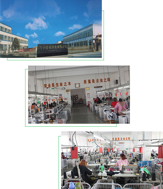 工廠始建于1999年9月,總投資8500萬人民幣,占地面積120畝,車間建筑面積53000平方米,倉庫8500平方米,現(xiàn)有員工960名,各種機器設(shè)備985臺,15臺160頭刺繡機,3臺多功能電腦車,年生產(chǎn)主導產(chǎn)品手套360萬雙,是中國海關(guān)AA 類企業(yè),是嘉祥縣手套協(xié)會會長單位。